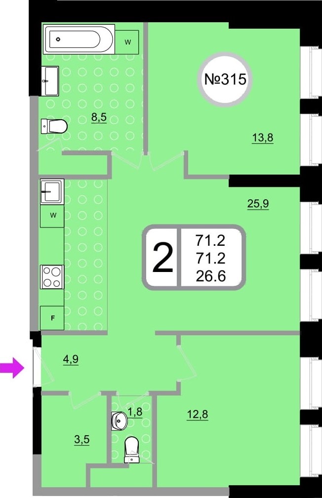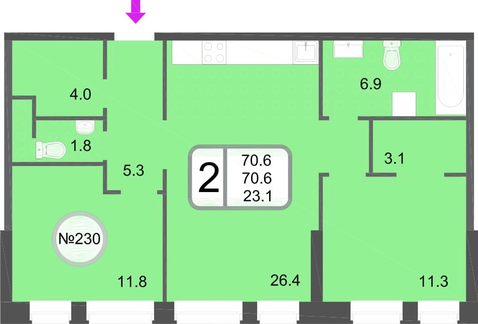 | Февраль 2020 | 26,4-26,4 м2 | 6 415 200 - 7 101 600 ₽ | ~259 938 ₽ | |