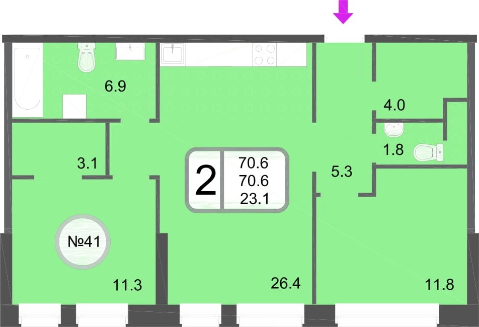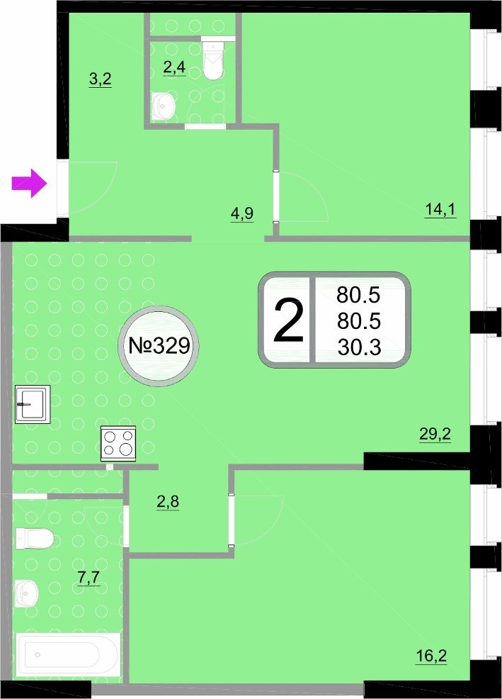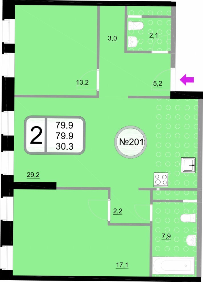 Площади двухкомнатных квартир в этом корпусе ограничены 61 кв. м.