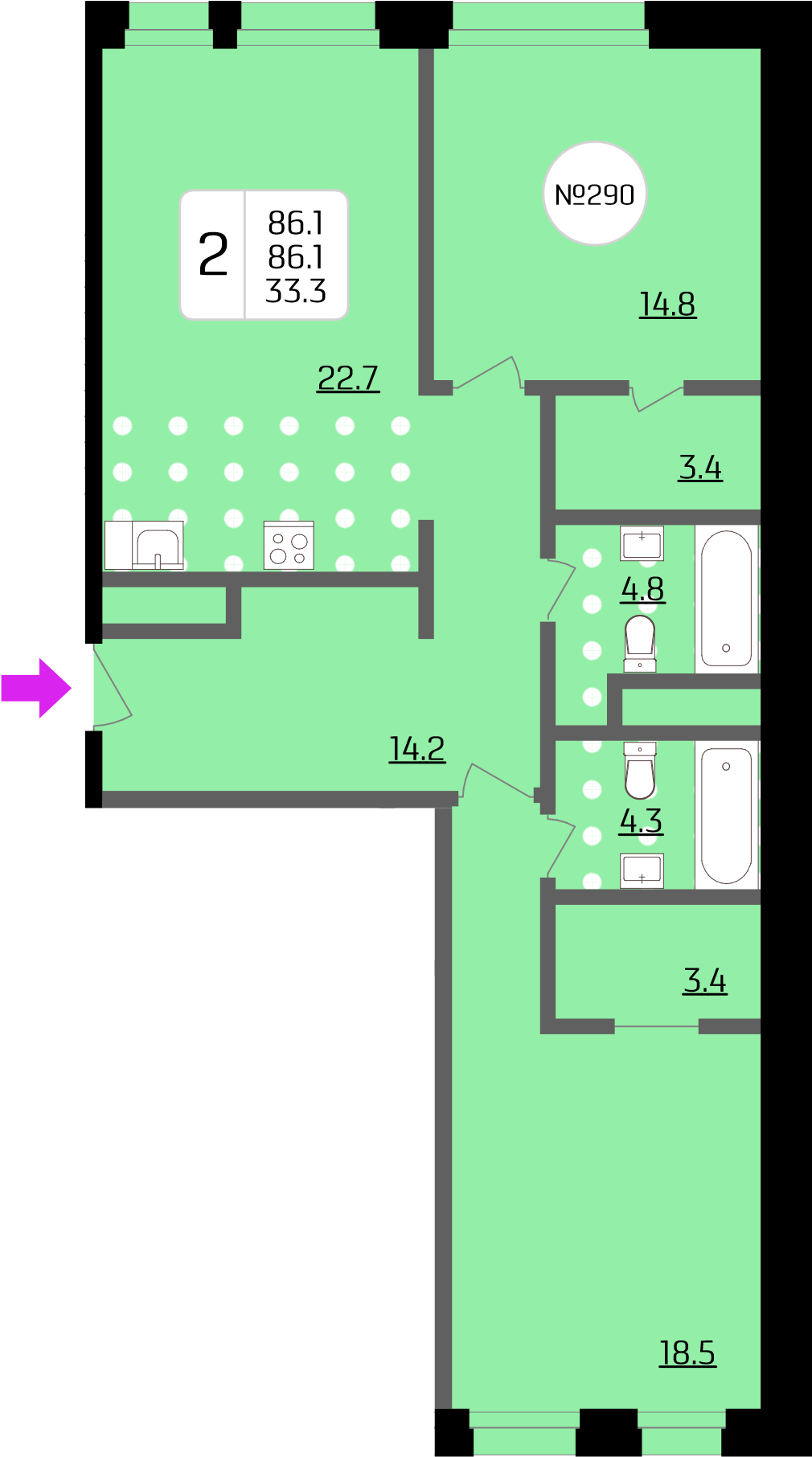 | Сентябрь 2017 | 57,8-86,1 м2 | 11 000 000 - 16 789 500 ₽ | ~194 332 ₽ | |