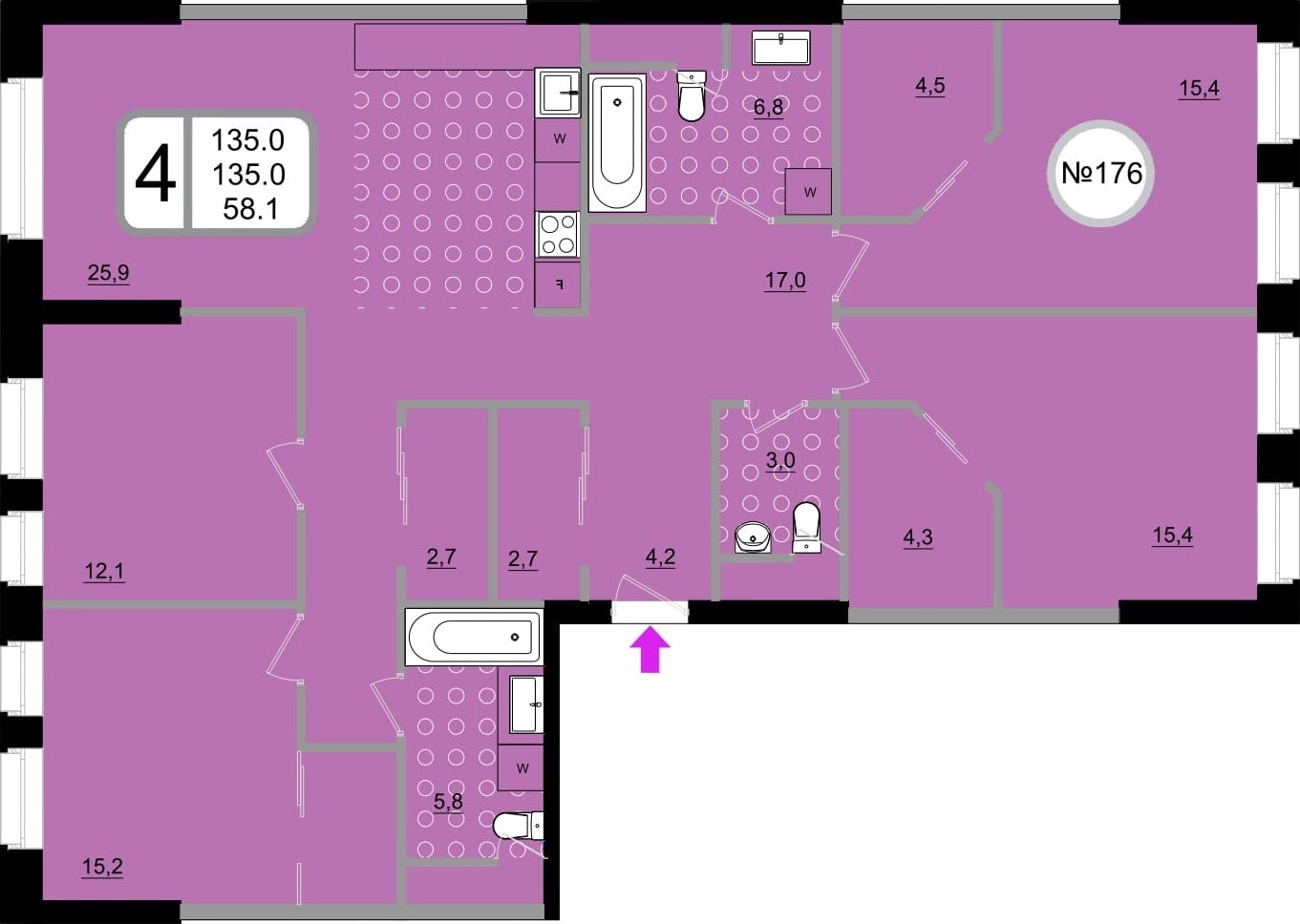 | Июнь 2018 | 133,2-136 м2 | 23 976 000 - 27 064 000 ₽ | ~189 740 ₽ | |