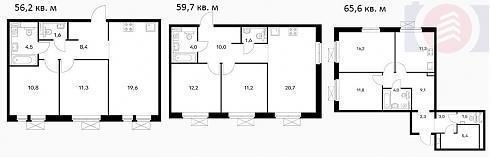 | Октябрь 2019 | 55,6-65,6 м2 | 9 301 380 - 10 705 920 ₽ | ~166 728 ₽ | |