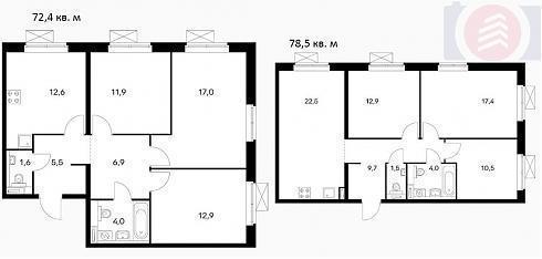| Декабрь 2019 | 72,4-78,5 м2 | 11 193 040 - 12 952 500 ₽ | ~160 970 ₽ | |