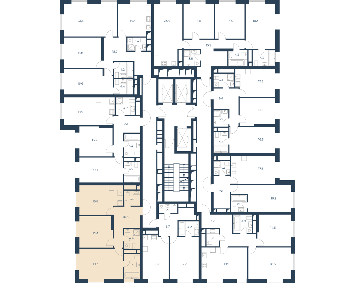 | Февраль 2023 | 98,1-104.8 м2 | 32 778 900 - 46 063 836 ₽ | ~388 771 ₽ | 0.47% |
