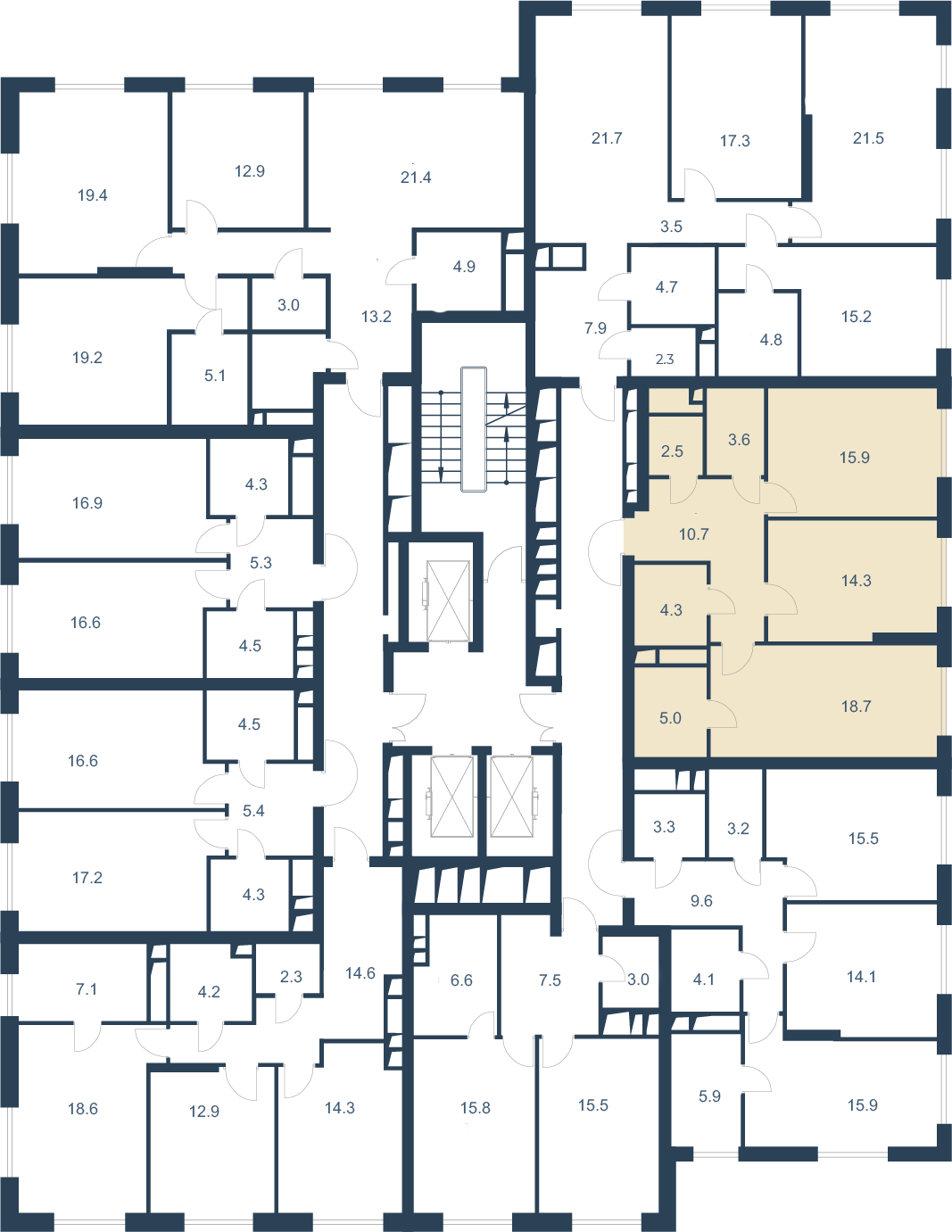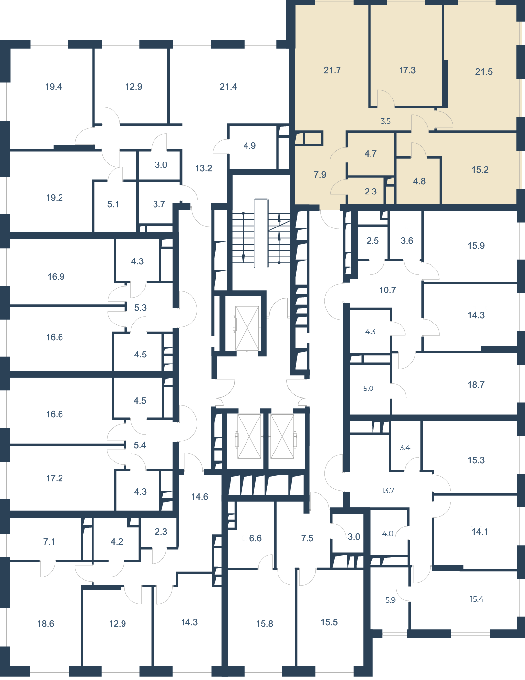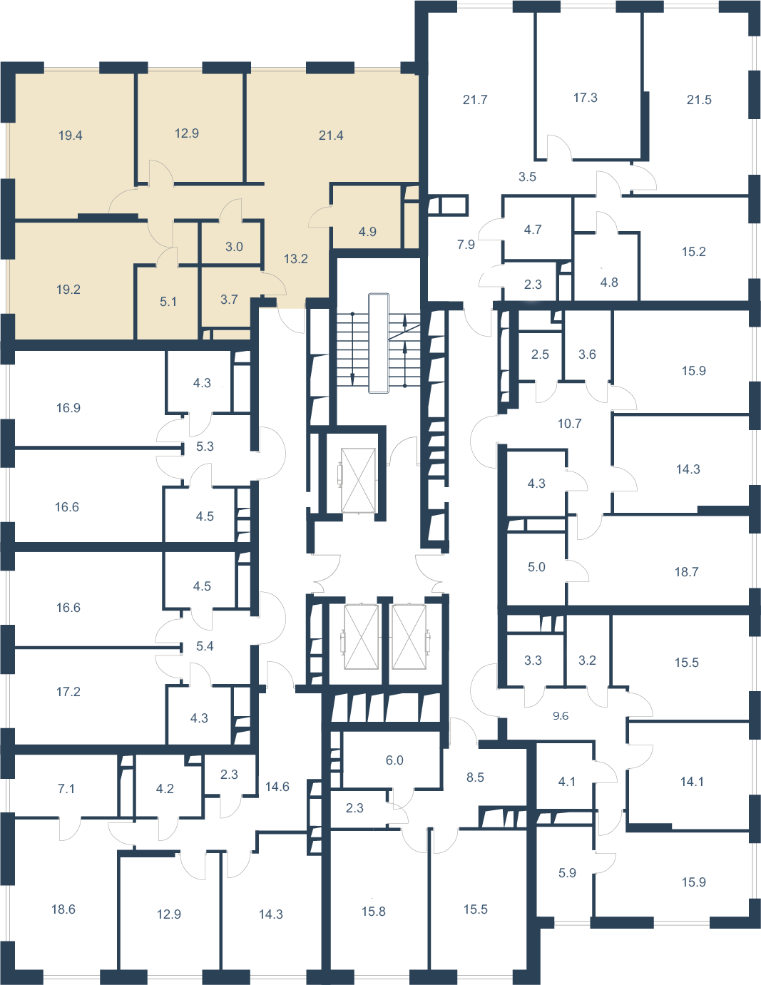 На первых этажах расположены квартиры с высокими потолками 5, 2 м, в которых можно организовать второй уровень. На верхних 20-21 этажах находятся квартиры с увеличенной высотой потолков 3, 4 м, в которых можно установить камин.