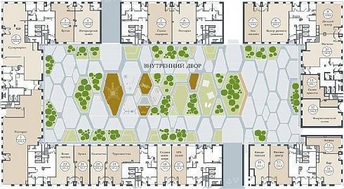 На 772 апартамента приходится 1 061 место в трехуровневом подземном паркинге. Внутреннее пространство квартала реализовано в соответствии с концепцией «двор без машин». Первые этажи предназначены для размещения коммерческих объектов, входные группы соответствуют премиальному статусу ЖК.
