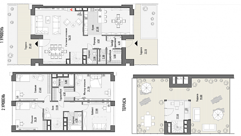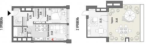 На пятом этаже расположены пентхаусы, т.е. двухуровневые апартаменты, имеющие вдобавок и по террасе. По большому счету, второй уровень, это больше терраса, нежели жилое помещение - официальный сайт ЖК ДЖАЗ в разделе «выбрать квартиру» это демонстрирует очень четко: