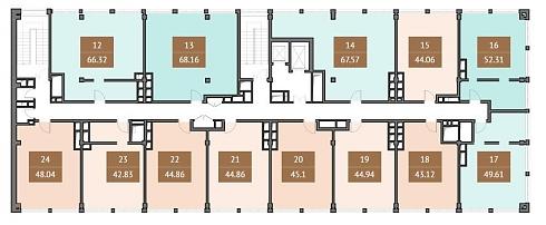 БИЛЛИ – апартаменты расположены со второго по девятый этаж, на лестничной клетке их строго по шесть, площади варьируются от 27 до 38 кв. м. В большинстве своем здесь придется ограничиться «студийной» планировкой, два окна положены лишь двум апартаментам на каждом этаже.