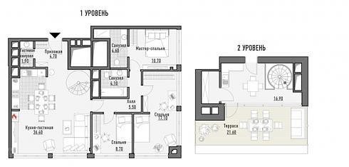 Как и в случае с Бенни, наиболее привлекательные варианты найдутся на последнем этаже и ими окажутся хорошо нам знакомые двухуровневые пентхаусы с террасами, дополненные редкой опцией – возможностью установки собственного камина.