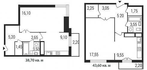 | Май 2019 | 38,7-43,6 м2 | 8 279 000 - 10 684 000 ₽ | ~234 111 ₽ | |