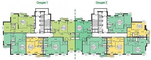 Три лифта, один из которых будет грузовым, положены обеим секциям третьего корпуса, при этом в секции №1 на этаже находятся 5 квартир, а в секции №2 на лестничной клетке расположено 6 квартир, что также принято считать хорошим показателем.