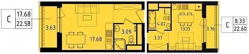 | Сентябрь 2018 | 22,54-22,58 м2 | 3 868 291 - 4 068 093 ₽ | ~180 372 ₽ | |