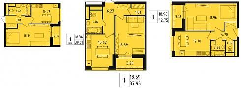 | Июль 2018 | 37,96-49,55 м2 | 5 641 122 - 7 373 028 ₽ | ~151 327 ₽ | 5.96% |