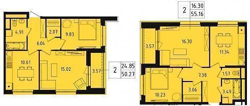 | Февраль 2018 | 55-66 м2 | 6 255 800 - 8 280 987 ₽ | ~120 139 ₽ | 2.47% |