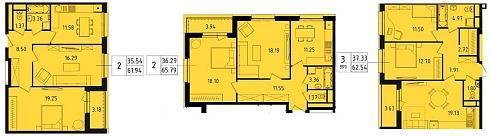 | Ноябрь 2019 | 37,99-64,59 м2 | 7 397 645 - 14 037 344 ₽ | ~212 228 ₽ | |