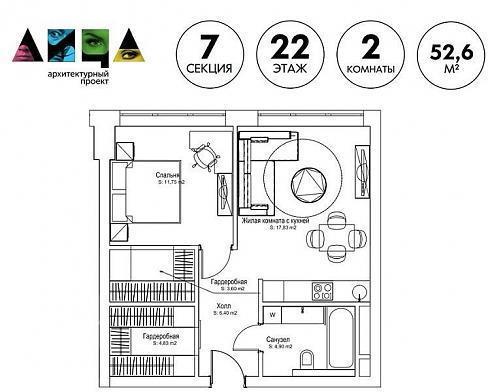 открываем планировку и понимаем, что речь идет о так называемой "евро-двушке" с кухней-гостиной, названной "жилая комната с кухней".