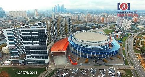 Жилой Комплекс или Арх-проект «Лица» на Хорошевке стоит практически вплотную к одному из пандусов, по которому поднимаются болельщики, посещающие дворец спорта «Мегаспорт».