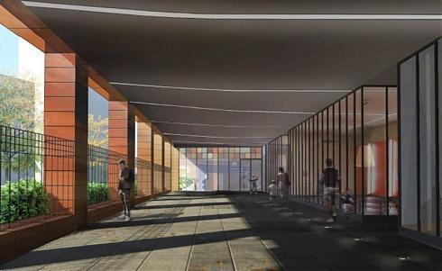 Вход в коммерческие помещения первого этажа и в частный детский сад, занимающий два этажа, будет осуществляться через открытую галерею: