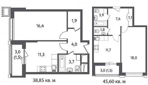 | Январь 2018 | 38,85-45,60 м2 | 9 200 319 - 12 766 450 ₽ | ~264 660 ₽ | |