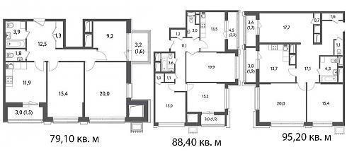 Разница в площади трехкомнатных квартир доходит до 16 кв. м: