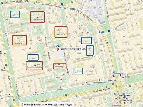 В пешей доступности находятся 4 школы, гимназия и 5 детских садов.