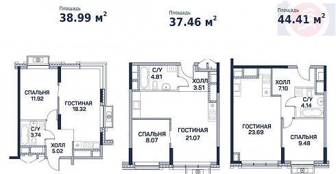 | Май 2019 | 37,52-44,41 м2 | 7 586 830 - 9 237 280 ₽ | ~207 705 ₽ | |