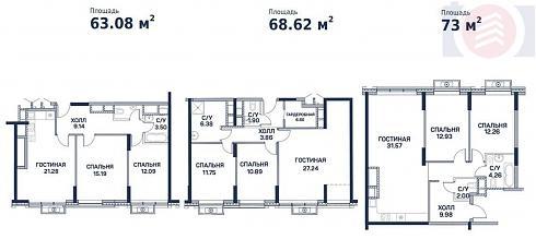 | Август 2019 | 68,09-88,98 м2 | 12 081 900 - 18 286 620 ₽ | ~194 670 ₽ | |