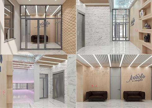 В двух боковых жилых подъездах установлены лифты, курсирующие до 22 этажа, и выделены колясочные, офис для консьержа с санузлом, кладовка для инвентаря и помещение для мойки лап домашних питомцев. Запроектирован мусоропровод. Внутренняя отделка входных групп оставляет приятное впечатление: