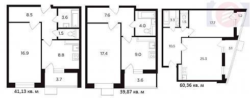 | Июнь 2017 | 38-60 м2 | 5 095 097 - 8 459 937 ₽ | ~138 317 ₽ | |