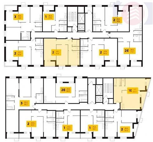 Наиболее привычно выглядят планировки линейных и угловых двухкомнатных квартир, наиболее авангардый вид имеют распашонки из 4 подъезда: