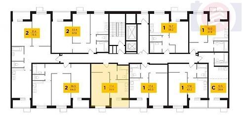 В первых трех секциях комплекса будет многолюдно – выйдя из одного из двух лифтов, положенных на секцию, Вы попадете в межквартирный холл, где в первой и во второй секциях окажется по 7 квартир на этаже.