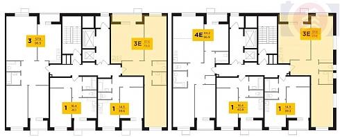 Самой многоквартирной секцией является секция №3, в которой на каждой лестничной клетке расположено по 9 квартир: