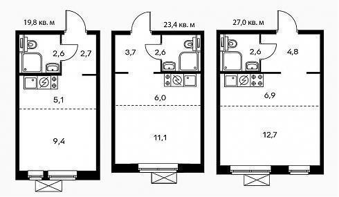 | Январь 2019 | 19,8-27 м2 | 3 229 380 - 4 330 800 ₽ | ~164 352 ₽ | |