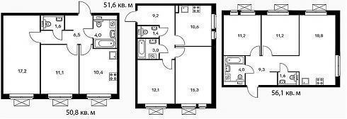 | Сентябрь 2019 | 50,7-72 м2 | 6 418 620 - 9 849 600 ₽ | ~133 346 ₽ | |