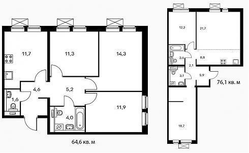 | Февраль 2019 | 64,6-92,7 м2 | 7 616 340 - 11 457 720 ₽ | ~122 270 ₽ | 4.93% |