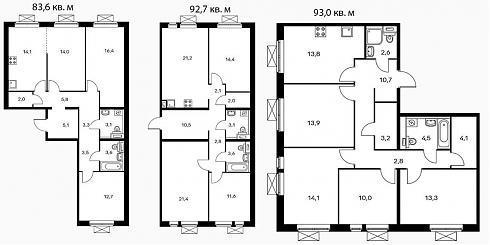 | Январь 2020 | 64,6-92,7 м2 | 8 042 700 - 13 015 080 ₽ | ~134 986 ₽ | |
