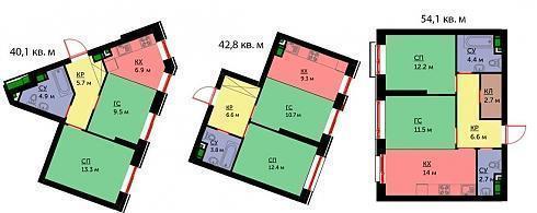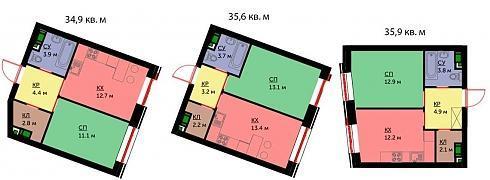 Студий в этом корпусе нет, площади однокомнатных квартир находятся у отметки в 40 кв. м, некоторые варианты с натяжкой можно считать «евро-двушками»: