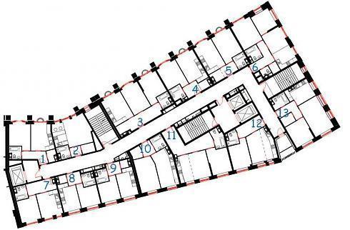 Официальный сайт ЖК «Невский» встречает посетителей радушным приветствием: «Добро пожаловать в прогрессивный бизнес-класс!». Класс в этой новостройке на Водном стадионе определенно присутствует, разве что площадь предлагаемых квартир в ряде корпусов не в полной мере соответствует привычной идеологии бизнес-класса. Пожалуй, именно корпус №5 оказался ближе всего к традиционным представлениям на этот счет, ведь здесь представлены самые большие квартиры во всем комплексе. Несколько удивляет количество квартир на этаже (да и трех лифтов с учетом высотности здания может оказаться маловато):