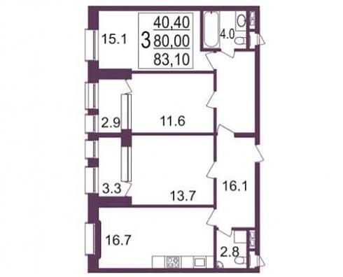| Сентябрь 2019 | 83,1-83,1 м2 | 7 363 078 - 8 106 052 ₽ | ~93 188 ₽ | |