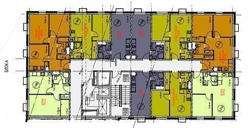 за счет чего количество помещений на лестничной клетке удалось сократить до восьми: