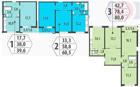 | Май 2017 | 32,6-39,5 м2 | 4 699 200 - 5 397 800 ₽ | ~142 211 ₽ | 1.01% |