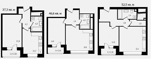 | Январь 2019 | 37,3-52,5 м2 | 7 609 200 - 11 329 500 ₽ | ~212 794 ₽ | |