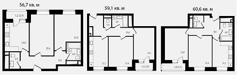 | Июнь 2020 | 56,7-59,5 м2 | 16 046 100 - 19 716 000 ₽ | ~310 975 ₽ | 11.33% |