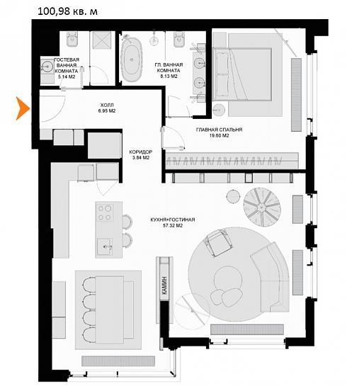Для убежденных холостяков-перфекционистов в комплексе есть поистине уникальное двухкомнатное предложение. Согласно протоколу, длинноногие красотки после визита в «главную спальню» должны будут, минуя «главную ванную комнату», проследовать в «гостевую ванную», или проделать этот путь в обратном порядке: