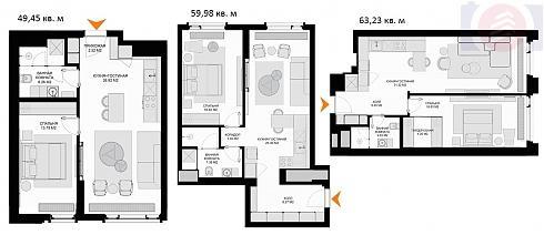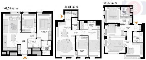 Относительно небольшие апартаменты с двумя спальнями разместились в диапазоне 67-86 кв. м: