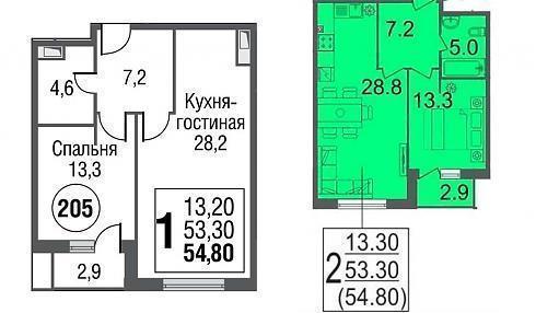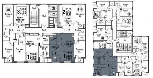 | Ноябрь 2018 | 53,5-56,8 м2 | 9 278 238 - 12 059 288 ₽ | ~195 757 ₽ | |