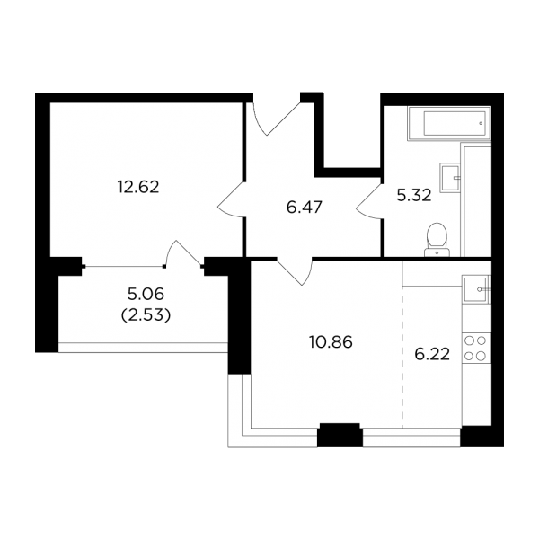 2-комнатная квартира  44.02 м2