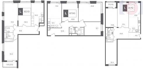Трехкомнатные («L»), а точнее, евро-четырехкомнатные квартиры доступны в распашном и угловом исполнении: