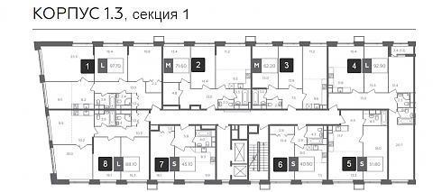 Любителям камерной атмосферы придется обходить стороной корпус 1.3, в одной из секции которого на этажах уместилось 8 квартир,