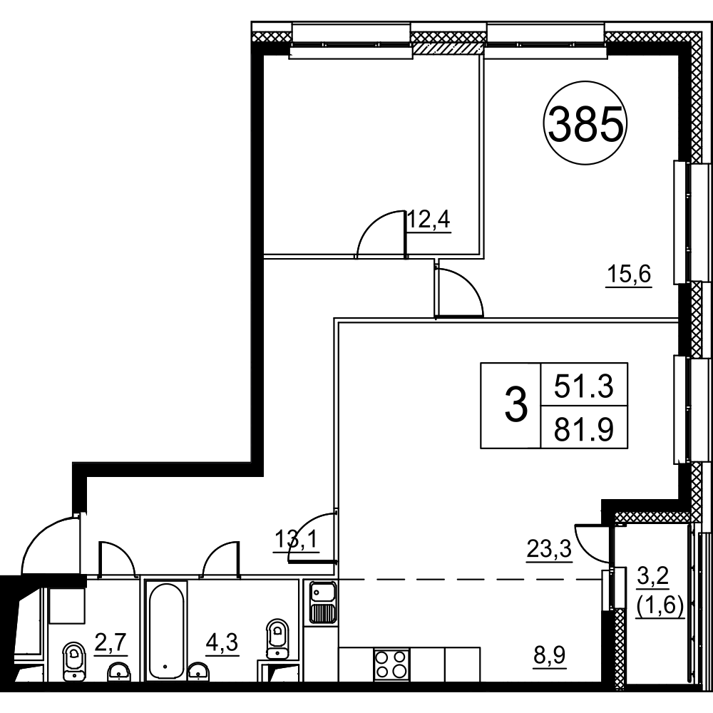 Трехкомнатные квартиры отличаются только ориентацией относительно сторон света, разница в метражах, практически, отсутствует: