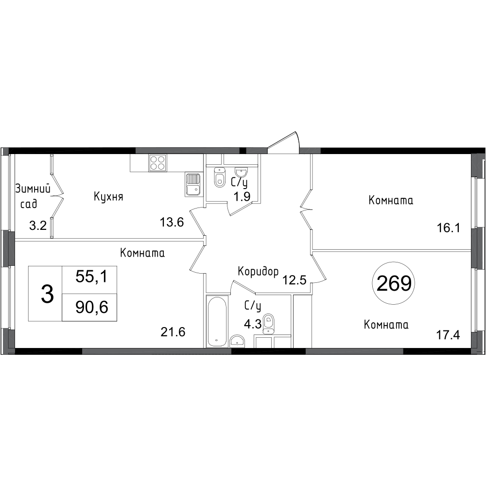 | Декабрь 2019 | 79,8-90,4 м2 | 10 340 340 - 15 576 624 ₽ | ~153 355 ₽ | |